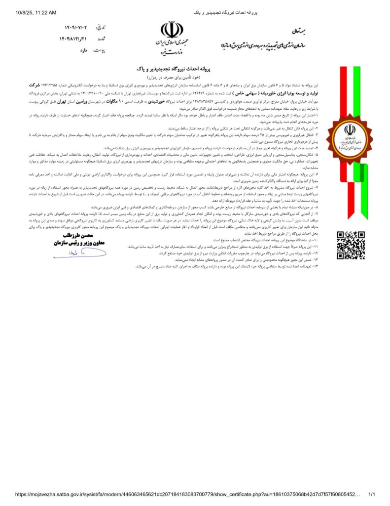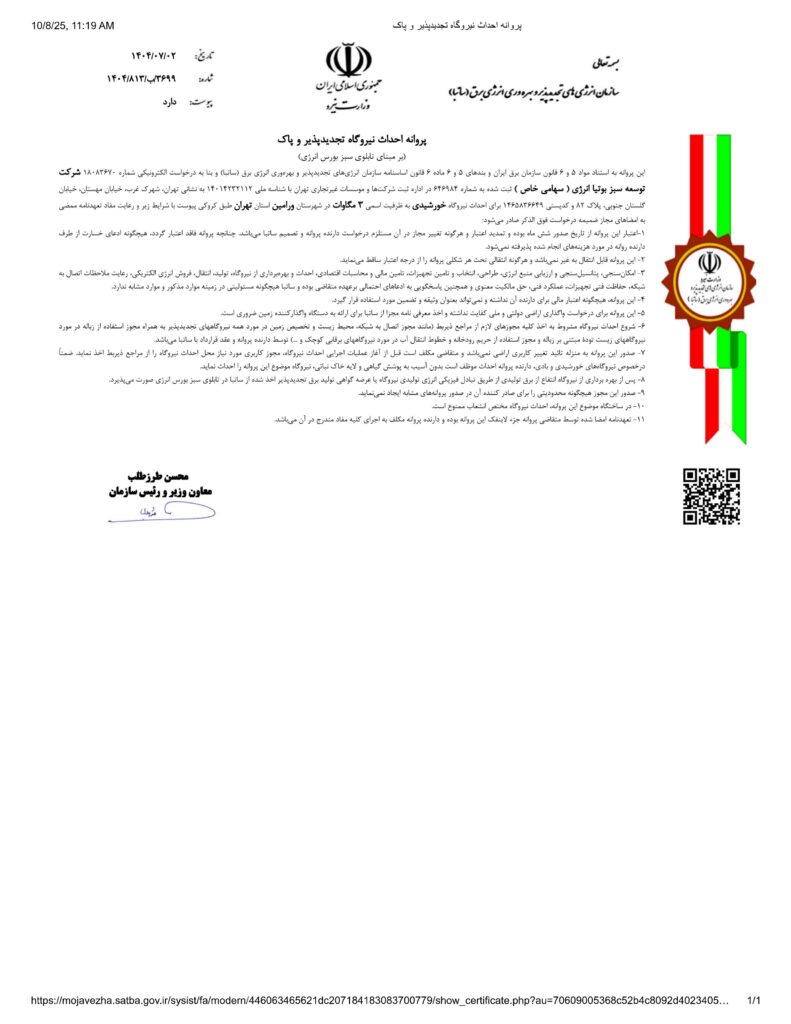 مجوز نیروگاه های هلدینگ بوتیا انرژی